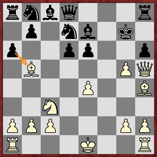 20.Txd4+ exd4 21.e5+ Rc5 22.Dc7+ Cc6 23.Axc6 y las negras abandonaron, ya que si 23…bc; 24.Da5+ Rc4; 25.b3 mate.